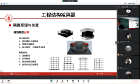 講座中,戴教授從汶川地震導(dǎo)致的建筑結(jié)構(gòu)倒塌和國(guó)務(wù)院出臺(tái)建筑工程抗震管理?xiàng)l例(草案)出發(fā),介紹了蘆山地震中蘆山人民醫(yī)院非隔震結(jié)構(gòu)的損失特征和采用隔震技術(shù)建筑可有效作為醫(yī)療救治中心的背景。講解了結(jié)構(gòu)韌性提升、結(jié)構(gòu)消能減震的概念與工作原理、常見(jiàn)阻尼器的構(gòu)造與力學(xué)特性、隔震原理與裝置隔震體系組成和建筑隔震分類的工程結(jié)構(gòu)減隔震技術(shù);分析了建筑結(jié)構(gòu)狀態(tài)感知評(píng)估、智能減隔震、震后快速評(píng)估和建筑工程健康監(jiān)測(cè)預(yù)警系統(tǒng)等涉及的工程結(jié)構(gòu)防災(zāi)監(jiān)測(cè)預(yù)警技術(shù);并從既有民用建筑結(jié)構(gòu)減隔震工程改造、新建民用建筑結(jié)構(gòu)減隔震工程、復(fù)雜鋼結(jié)構(gòu)工業(yè)建筑減隔震體系方面進(jìn)行了案例分析。