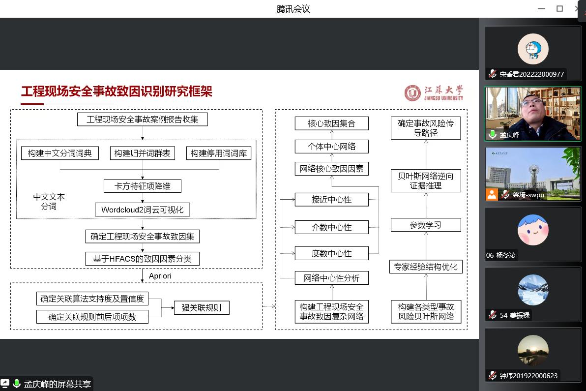 在講座中,孟慶峰教授首先向大家說明了一個好的選題是如何產(chǎn)生的,然后講解了如何進行研究對象的選擇,接著引入實際案例分享了研究工程現(xiàn)場安全問題的必要性。孟慶峰教授在研究調(diào)查報告基礎(chǔ)上,結(jié)合復(fù)雜網(wǎng)絡(luò)和貝葉斯網(wǎng)絡(luò)技術(shù),分析了工程現(xiàn)場安全事故的致因因素集以及各類型事故風(fēng)險傳導(dǎo)路徑。孟慶峰教授結(jié)合自身的國家自然科學(xué)基金申報經(jīng)歷,與老師分享如何更好地撰寫申請書,提升基金申請命中率,做出學(xué)科標志性成果。