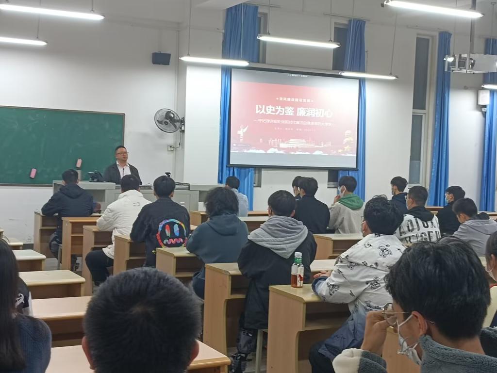 “高校大學生應該怎么做?”周老師通過講解年輕干部腐敗的典型案例,深入淺出,讓同學們在思想上受到一次警示、警醒和教育,進一步筑牢“不敢腐、不能腐、不想腐”的思想防線。