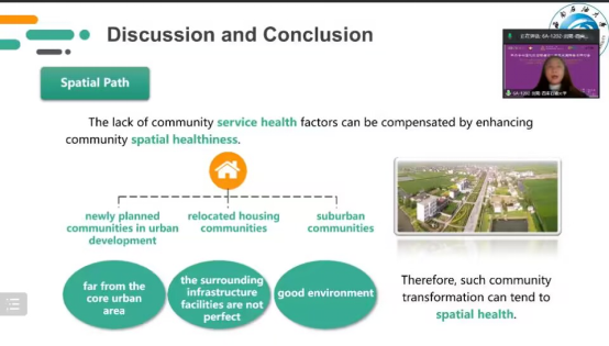 我院盧虹林老師的研究生劉璐在專題研討會(huì)分論壇六作了題為《A Study of Factors Influencing Community Health Transformation in The Post-Epidemic Era》的英文學(xué)術(shù)匯報(bào),論文對(duì)后疫情時(shí)代下社區(qū)改造的健康適應(yīng)性影響因素進(jìn)行分析,以期為完善健康社區(qū)的建設(shè)提供理論參考。