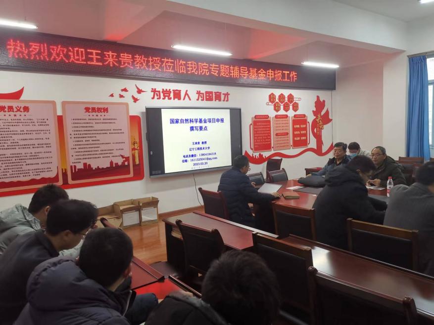 為高效推進學院國家自然科學基金項目申報工作,切實提高學院教師國家自然科學基金申報書的撰寫質量,2月20日上午,我院邀請王來貴教授在明志樓A536開展國家自然科學基金項目申報專題輔導工作。王來貴教授為遼寧工程技術大學二級教授、博士生導師。巖石力學與工程學會教育工作委員會委員,“中國地質災害與防治學報”、“遼寧工程技術大學學報”編委,全國優秀教師。曾擔任國家自然科學基金委員會第十二、十三屆專家評審組成員。先后主持國家自然科學基金項目重點項目、面上項目和國際合作項目等7項,獲省(部)級科技進步獎4項。報告會由我院胡啟軍副院長主持,科學技術發展研究院副院長何蘇、化學與化工學院肖國清教授和擬申報2023年國家自然科學基金項目的30余名教師參加了此次報告會。