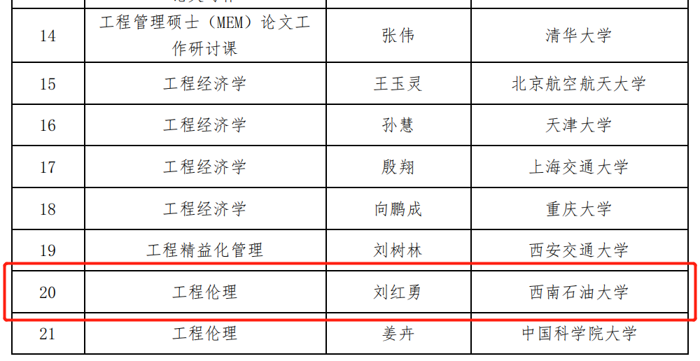 我院劉紅勇教授、吳偉東教授建設課程入選全國工程管理專業學位研究生在線示范課程