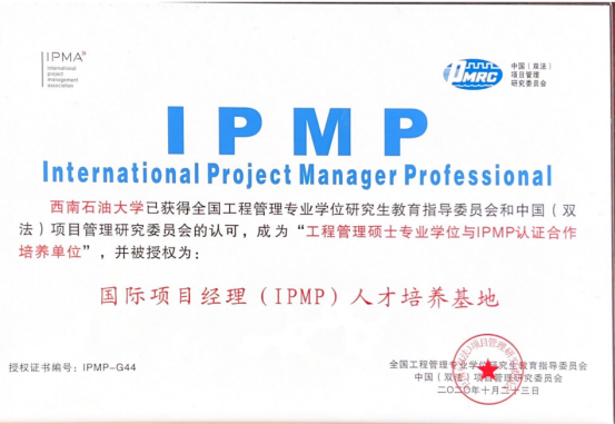 “國際項目經理(IPMP)人才培養基地”認證證書
