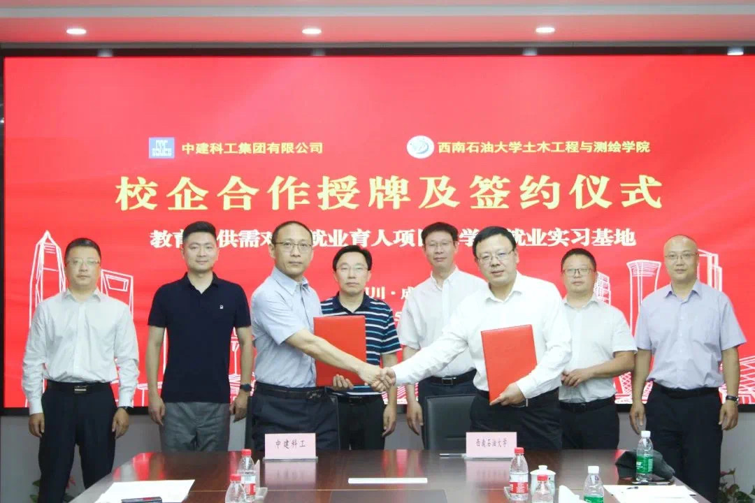 5月7日,我院與中建科工四川公司校企合作授牌及簽約儀式在成都順利舉行。中建科工西部大區黨委書記、董事長高勇剛,黨委副書記、總經理沈洪宇,黨委委員、總工程師朱邵輝,四川公司黨總支書記、總經理高成子;學院黨委書記朱松柏,院長邵永波,黨委副書記、紀委書記周永華,土木工程專業建設負責人蒲萬麗,道橋教研室主任樊曉一,道橋教研室教師王知深,建筑教研室主任鄧夕勝出席儀式,西部大區、四川公司相關業務負責人參加。