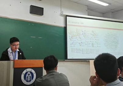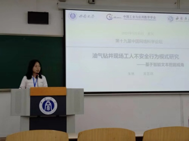 在分組報告交流環節,土測院朱林老師圍繞《The backbone discovery of an industry-level research and collaboration network by a cross-disciplinary co-authorship network analysis》作專題報告,分享了行業級研究與合作網絡的最新研究成果。土測院研究生黃思琪圍繞《油氣鉆井現場工人不安全行為模式研究——基于智能文本挖掘視角》作專題報告,介紹了關于油氣工人的不安全行為特征研究成果。