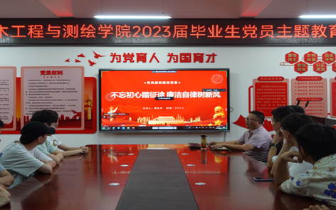 為切實加強畢業生黨員教育,引導畢業生黨員以堅定的理想信念走向人生和社會的新征程,在實干實績中錘煉黨性修養,結合主題教育工作安排,6月8日上午,土木工程與測繪工程學院黨委副書記、紀委書記周永華為學院2023屆畢業生黨員送上“不忘初心踏征途廉潔自律樹新風”主題黨課。