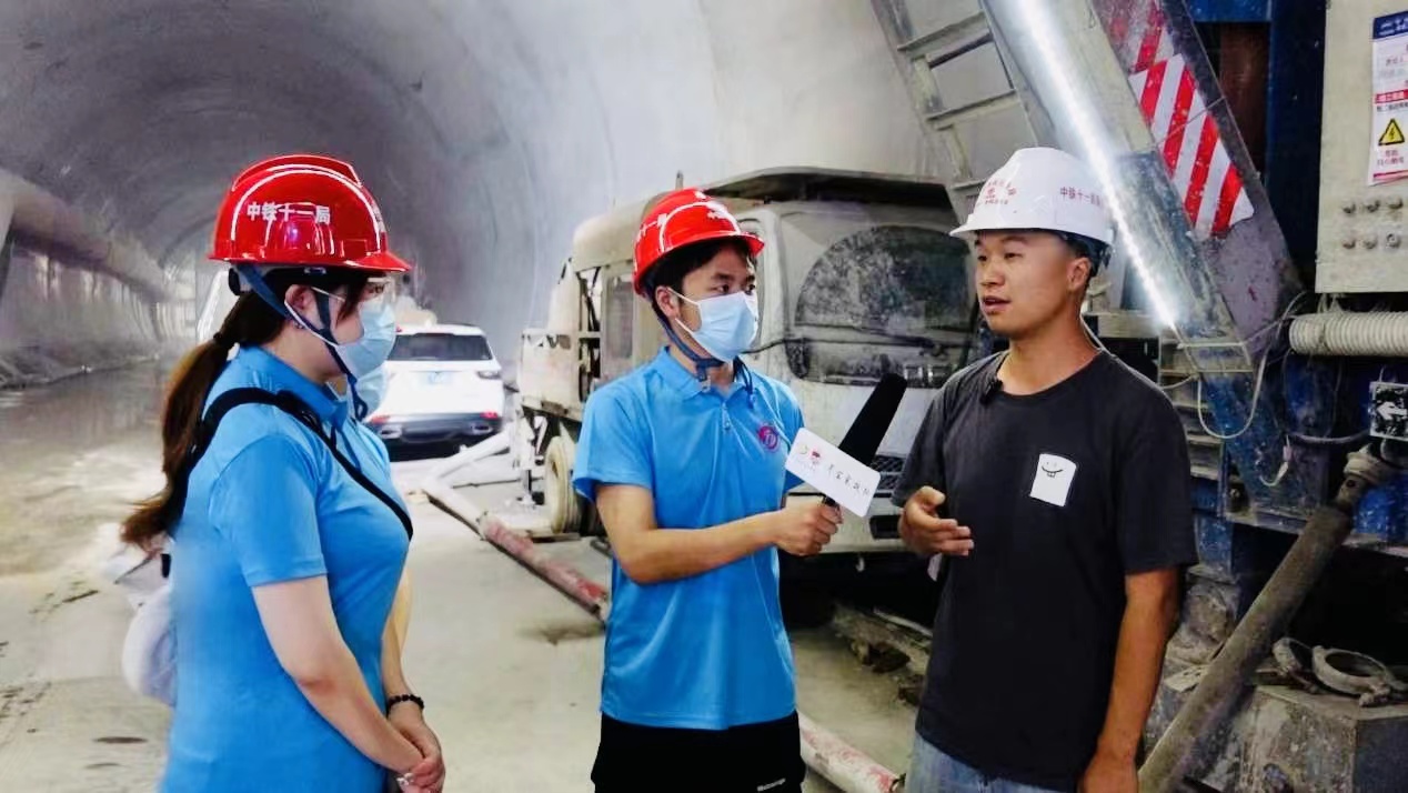 隊員們在渝昆高鐵重要節點工程縉云山隧道采訪工人
