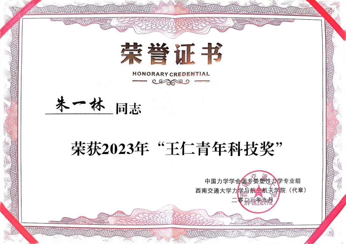 近日,在成都召開的2023年全國塑性力學會議上,公布了“王仁青年科技獎”評選結果,我院朱一林副研究員獲此殊榮,冷勁松院士和周又和院士親自為獲獎人員頒獎。