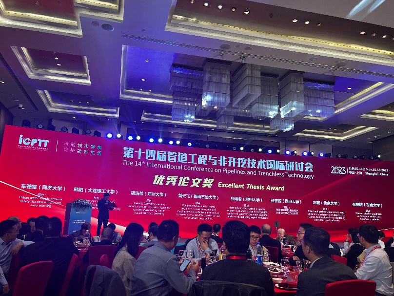 11月15-18日,“第十四屆管道工程與非開挖技術國際研討會(ICPTT 2023)”在上海市進行。本次國際研討會由同濟大學、中山大學、鄭州大學等單位聯合主辦,會議設置了管道非開挖修復及應用、非開挖技術及創新應用、綜合管廊與城市更新、地下管線監測檢測修復和研究生論壇等五個專題論壇,來自國內外的能源企業和眾多高校的管道和非開挖領域知名專家學者開展了近120場主旨報告和專題技術報告,參會學者都盡情展示了在管道工程和非開挖領域的最新研究成果和工程經驗。我院工程結構質量可靠性團隊青年教師秦國晉和王藝環參加了會議,分別作“管道缺陷評估的原理、數值解法及其應用”和“能源轉型下天然氣管道的狀態概率評估”的分會場報告,并與參會的管道和非開挖技術專家進行了深入交流。我院結構安全工程博士黃云飛獲得優秀論文獎,其論文獲得了評委專家的認可。