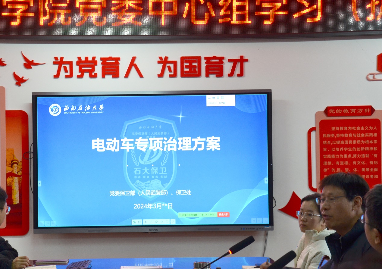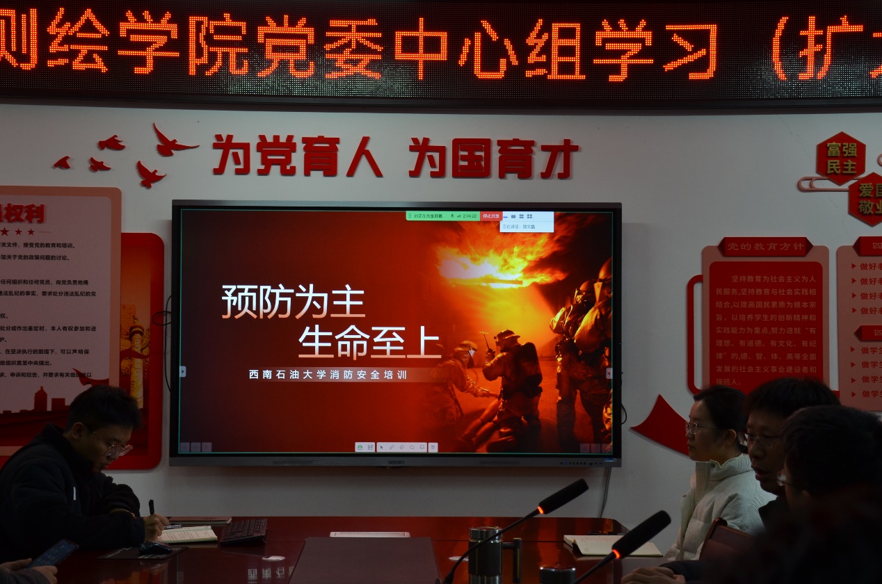 會議還就安全工作進行了專題學習討論,朱松柏傳達了學校關于加強安全工作要求,組織與會人員學習了《電動車專項治理方案》,觀看了《預防為主、生命至上》消防安全培訓片,要求各單位迅速傳達到學院全體師生員工,并部署了全院安全大檢查常態化相關工作。