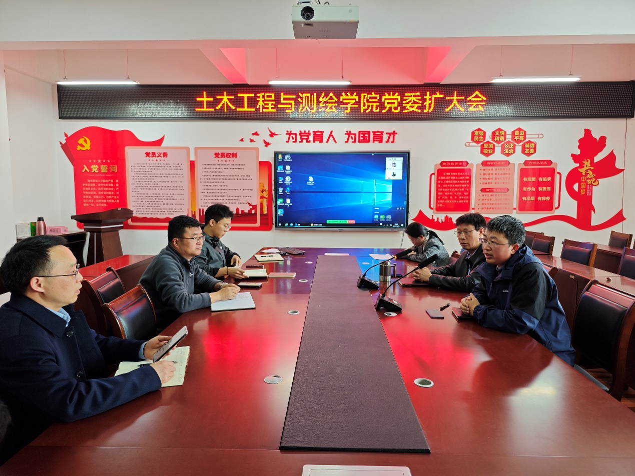 3月19日下午,土測院召開黨委擴大會,專題審議學院教代會和工代會相關報告。學院領導班子、黨委委員、工會委員出席,會議由黨委書記朱松柏主持。