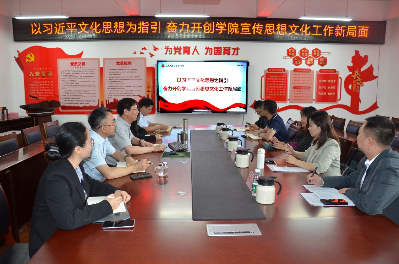 4月23日下午,校黨委副書(shū)記、工會(huì)主席衡彤、黨委常委、學(xué)校宣傳部長(zhǎng)張敏及學(xué)校黨委宣傳部負(fù)責(zé)人來(lái)到學(xué)院調(diào)研指導(dǎo)學(xué)院宣傳思想文化工作,學(xué)院領(lǐng)導(dǎo)班子成員及相關(guān)部門(mén)負(fù)責(zé)人參加會(huì)議。