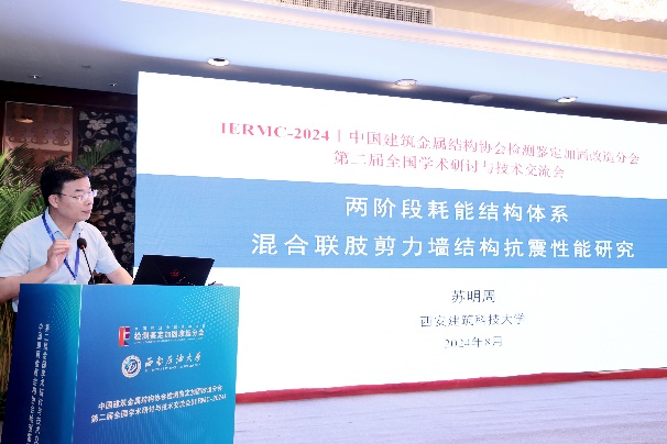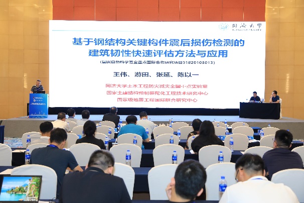在8月3日下午的大會報告第一階段,王文達教授,蘇明周教授,侯和濤教授和王喆教授級高工分別作了題為“CFRP加固火災后鋼管混凝土構件的抗撞性能及撞后剩余力學性能”、“混合聯(lián)肢墻結構抗震性能研究”、“預制混凝土板加固鋼梁的抗彎性能研式”和“老舊小區(qū)電梯增設技術和標準編制”的大會報告。