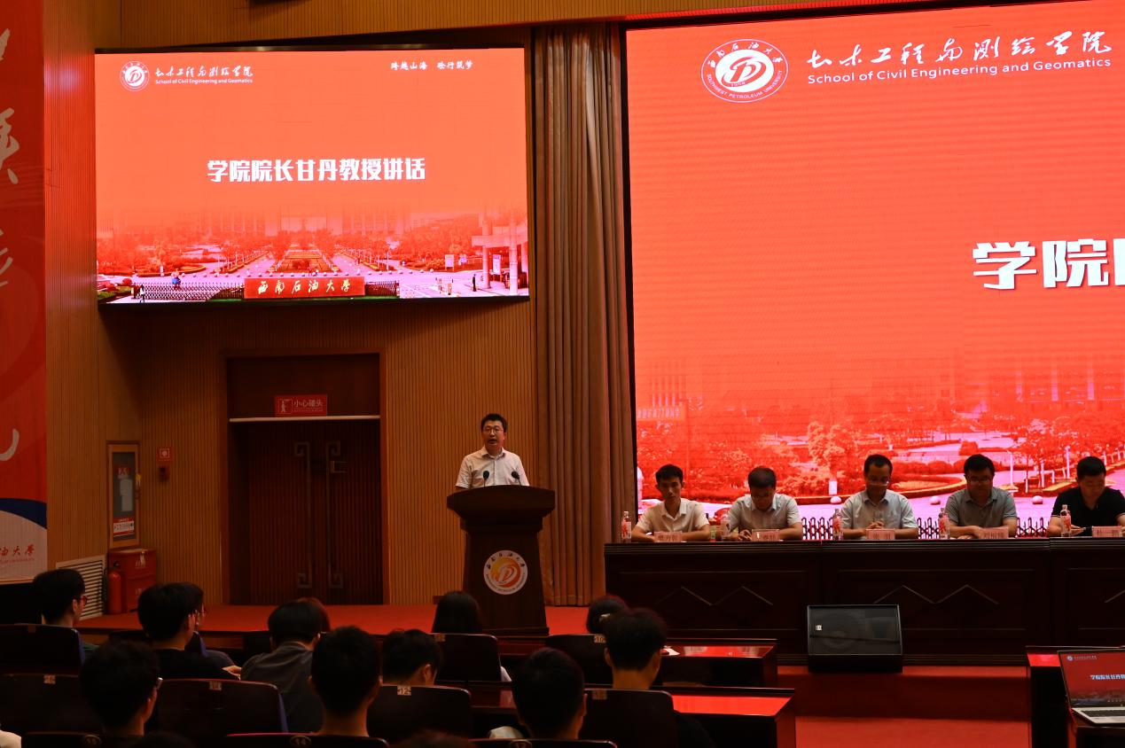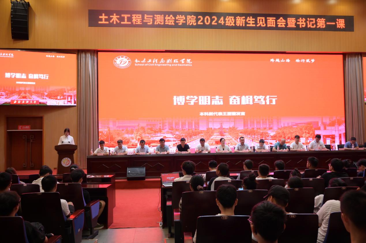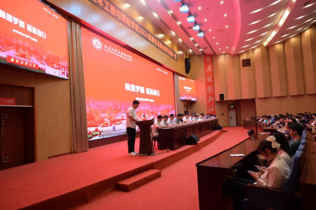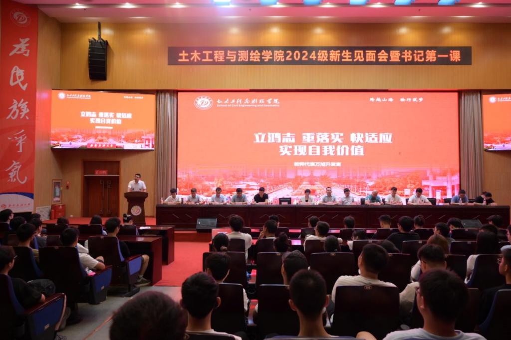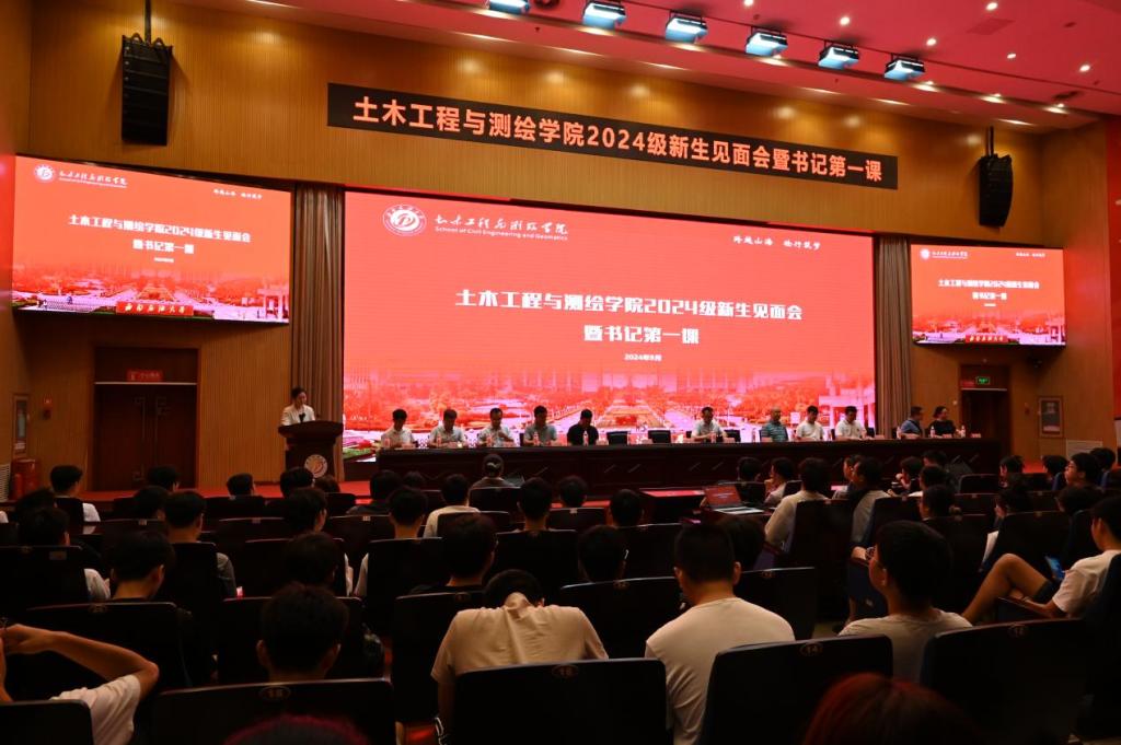 9月14日晚上,土測院2024級全體新生見面會在一期圖書館報告廳隆重舉行。典禮由學院黨委副書記、紀委書記何雨洋主持,學院領導班子、成都校區各教研室主任書記、教師代表及2024級本科生、碩士生共同參加。院黨委書記熊俊楠為全體新生上開學第一課《筑牢思想防線,加強社會主義意識形態建設》。