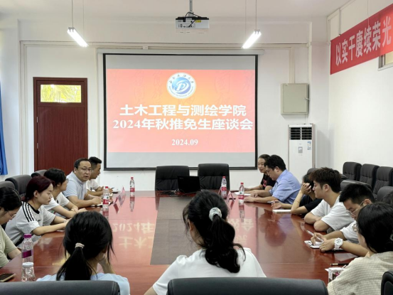 為了進一步推動學院人才培養工作,加強師生間的交流與互動,9月20日上午,土木工程與測繪學院在南充校區第三教學樓3219會議室召開了土測院2024年推免研究生座談會。學院副院長胡啟軍、潘海澤,主管研究生招生與培養的張華英老師、2021級輔導員牟彩偉老師以及學院南充校區全體2025屆推免生參加了座談。