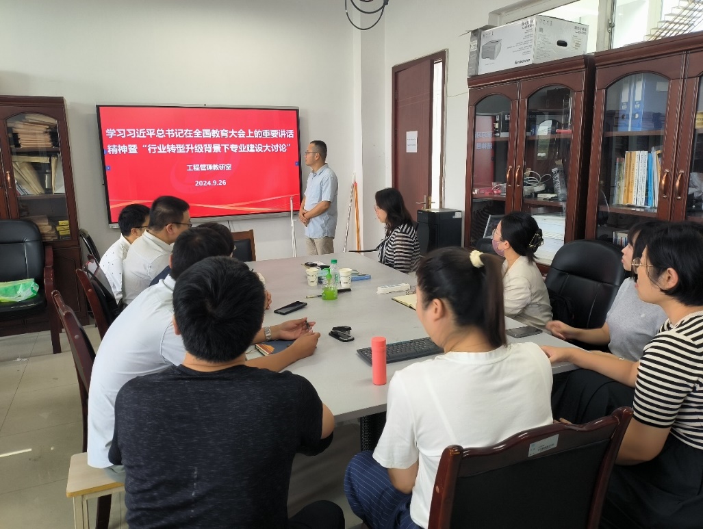 工程管理教研室黨支部書記張羽:通過學習討論,我首先感受到國家建設教育強國的決心和力度,專業建設與國家戰略急需的適配度、地方高校專業建設與區域發展的適配度、提高本科專業建設與學生全面發展的適配度等尤為重要。然后,行業轉型背景下感受到專業轉型和調整的緊迫性。第三,我感受到行業沖擊的猛烈以及專業在逆境中奮起的勇氣和意志,工程管理專業不僅能打硬仗、還善打硬仗,并且在歷史上最終贏得了勝利。第四,從學生談心談話入手,落實班組導師制,分享導師經驗、提供導師激勵、壓實導師責任,在明確導師制任務目標的基礎上,全面提高導師制成效,最終全面提升專業凝聚力和競爭力。