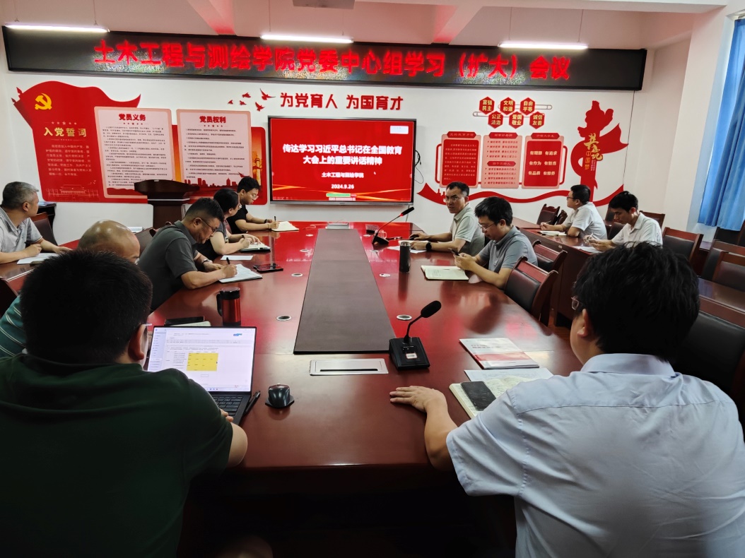 9月26日上午,學院黨委中心組學習(擴大)會議上,學院黨委書記熊俊楠領學習近平總書記在全國教育大會上的重要講話,解讀《中共中央國務院關于弘揚教育家精神加強新時代高素質專業化教師隊伍建設的意見》。學院院長傳達和解讀學科專業設置調整優化相關文件精神。學院黨政就“行業轉型升級背景下專業建設大討論”暨師德師風建設研討進行安排部署。
