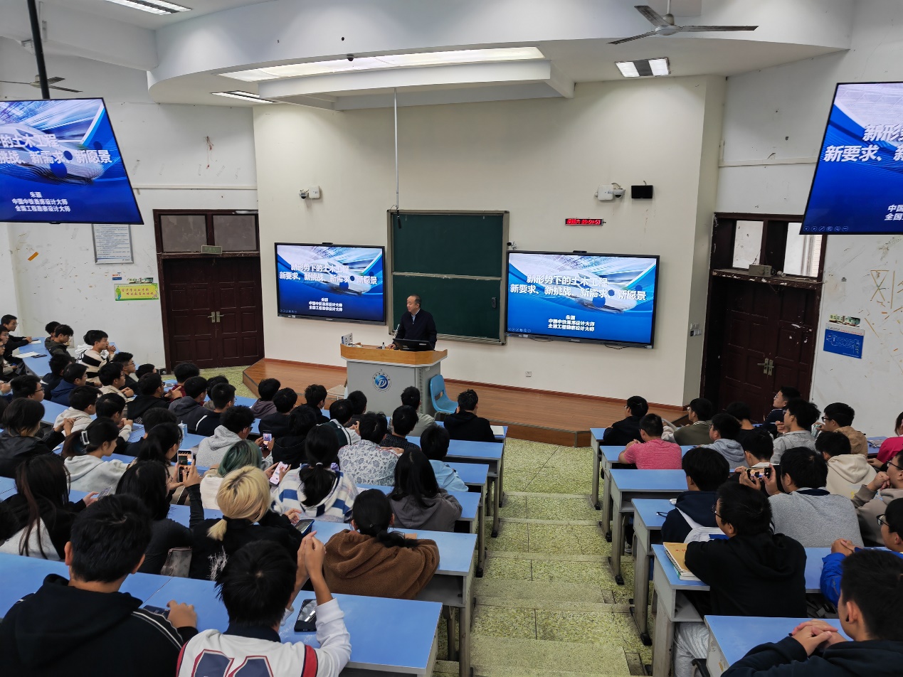 2024年10月26日上午,中國中鐵首席設計大師、全國勘察設計大師、教授級高級工程師朱穎,在思學樓B110為土木工程專業(yè)師生做題為“新形勢下的土木工程——新要求、新挑戰(zhàn)、新需求、新愿景”的報告,土木工程專業(yè)師生220余人聆聽了講座。