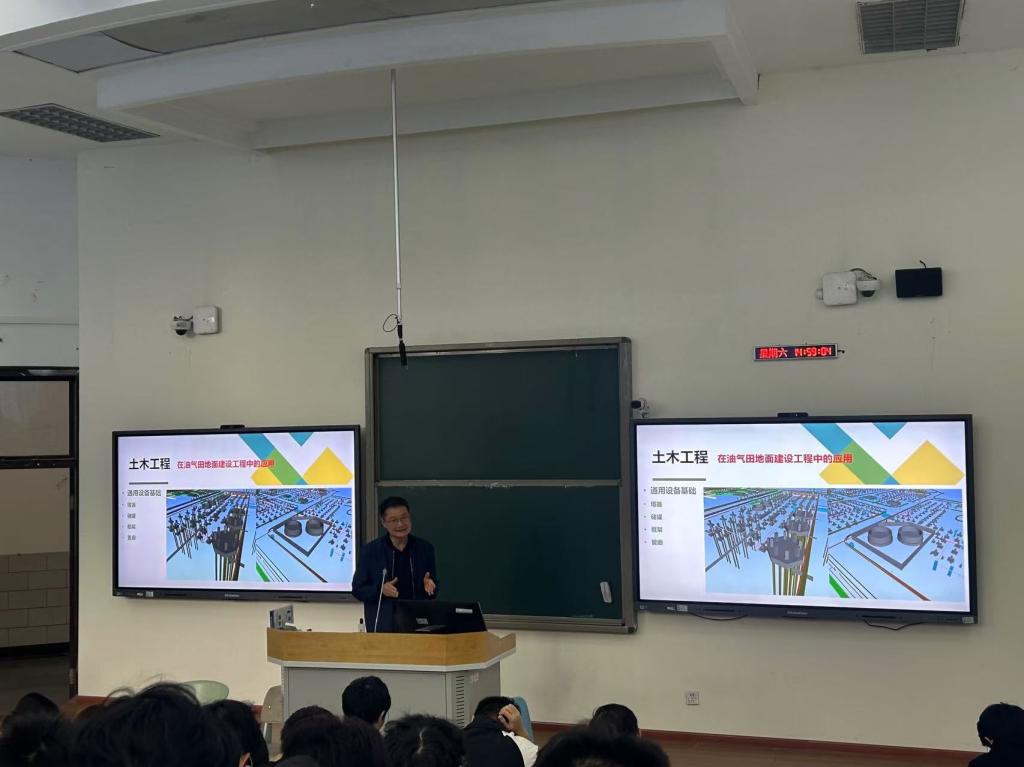 2024年11月2日下午,中石化石油工程設計有限公司副總經理孫曉春應邀在明志樓B110為我院一百余名師生作題為“土木工程在油氣田地面工程中的應用”的講座,講座由學院院長甘丹主持。