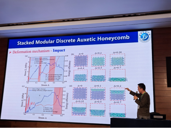 我院教師朱一林受邀出席大會(huì),并作題為《On the Design and Mechanical Properties of Novel Modular Discrete Auxetic Honeycomb Meta-Structures》的邀請(qǐng)報(bào)告,系統(tǒng)介紹了其團(tuán)隊(duì)在模塊化分離式拉脹蜂窩超結(jié)構(gòu)領(lǐng)域的研究成果。