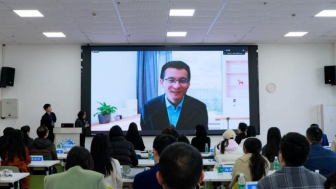圖2 與西交利物浦大學首席教育官、未來教育學院執行院長張曉軍教授進行時空連線