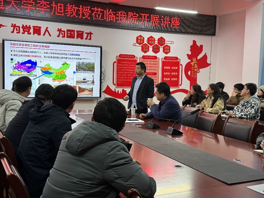 2024年12月6日上午,北京交通大學教授、博士生導師李旭應邀在明志樓A536為我院師生作題為“非飽和土的水分遷移和凍脹機制”的學術講座。講座由我院副院長胡啟軍教授主持。