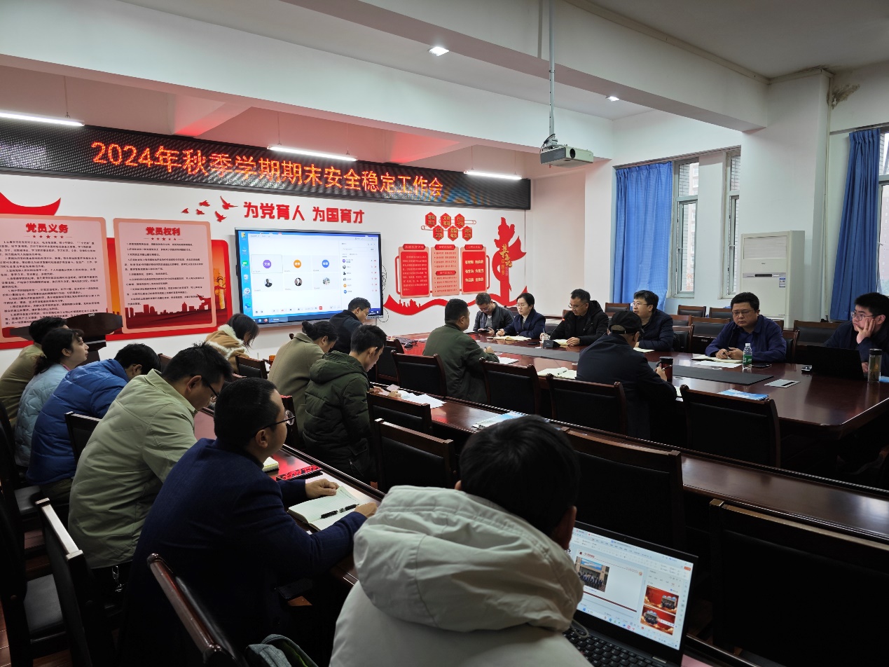 12月5日,學院成功召開了2024年秋季學期期末安全穩定工作會議,會議由院黨委書記熊俊楠主持。學院領導班子成員、各科室負責人、教研室黨支部書記以及實驗教學中心全體老師等齊聚一堂,共同聚焦并深入探討了校園安全穩定工作,旨在為學院的有序運行提供堅實保障。