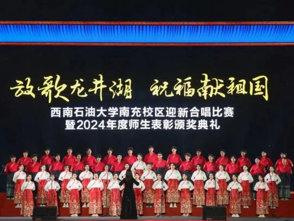 12月15日,南充校區舉行“放歌龍井湖 祝福獻祖國”迎新合唱比賽暨2024年度師生表彰頒獎典禮,點贊一年來奮斗拼搏、砥礪前行的師生。本次合唱比賽由南充校區主辦,學生發展部(團委)承辦、土木工程測繪學院協辦。南充校區領導、校區各職能部門、各學院負責同志和2500余名師生觀看比賽并頒獎。