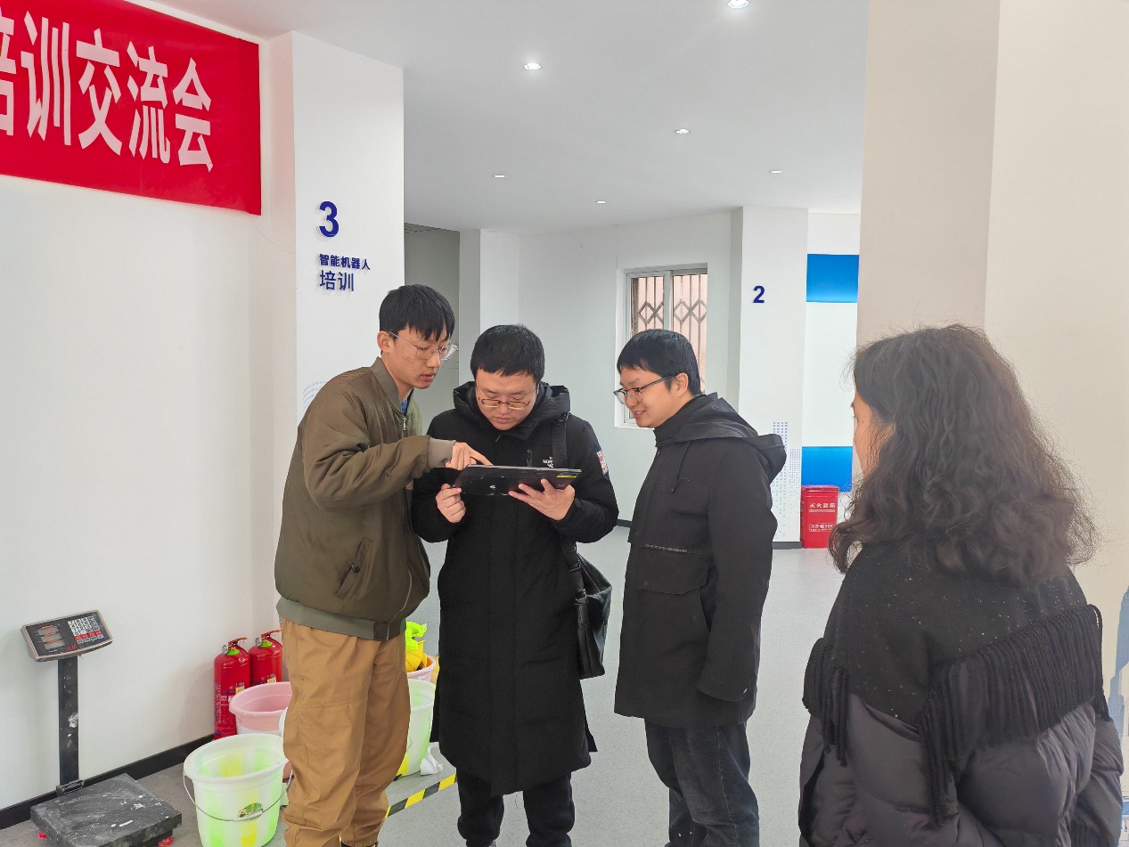 2024年12月6日,西南石油大學工程管理專業教研室主任蔣杰與智能建造課組負責老師朱林訪問了四川展視數科科技有限公司。展視網(北京)科技有限公司總經理王全杰、總裁謝軍、產品經理劉盈盈以及區域銷售經理陳倩等高層管理人員熱情接待了來訪老師,并展示了公司目前主要運營的數字教育產品和建筑機器人,兩位老師現場進行了測試使用。
