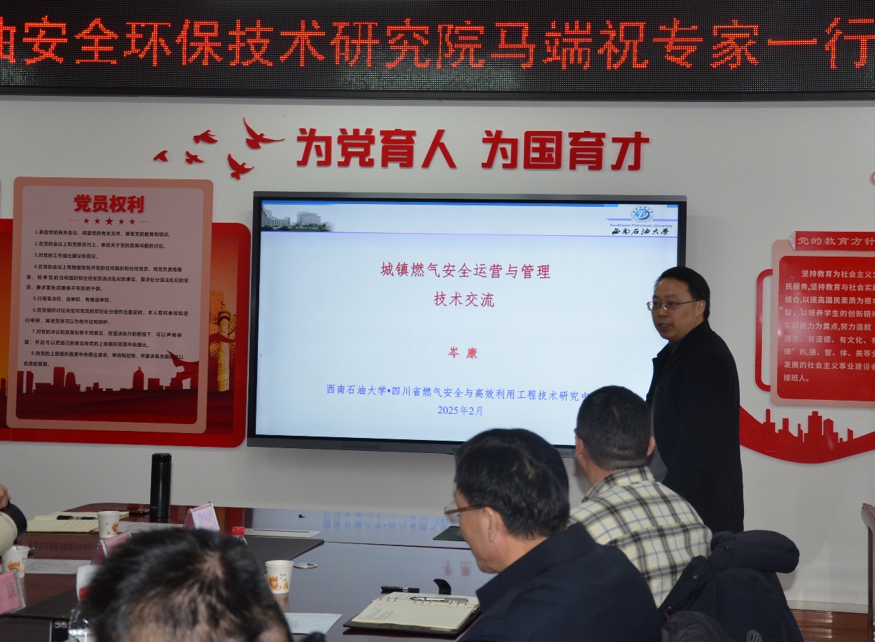 2月27日上午,中國石油集團公司安全環保技術研究院有限公司(后簡稱中石油安環院)原首席專家馬端祝、大連分院院長王學岐一行到訪西南石油大學土木工程與測繪學院,并與四川省燃氣安全與高效利用工程技術中心進行了交流。
