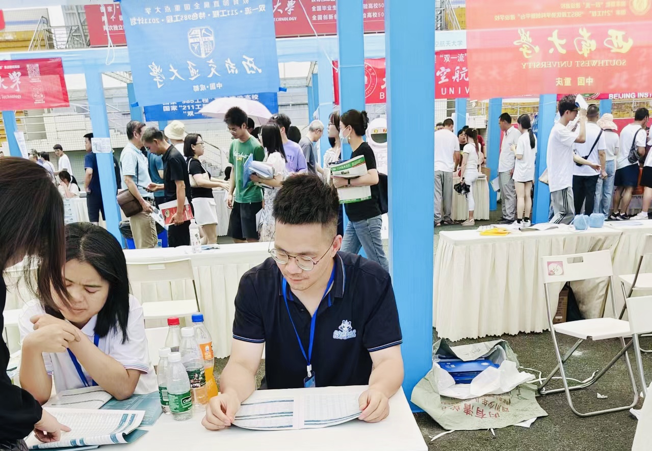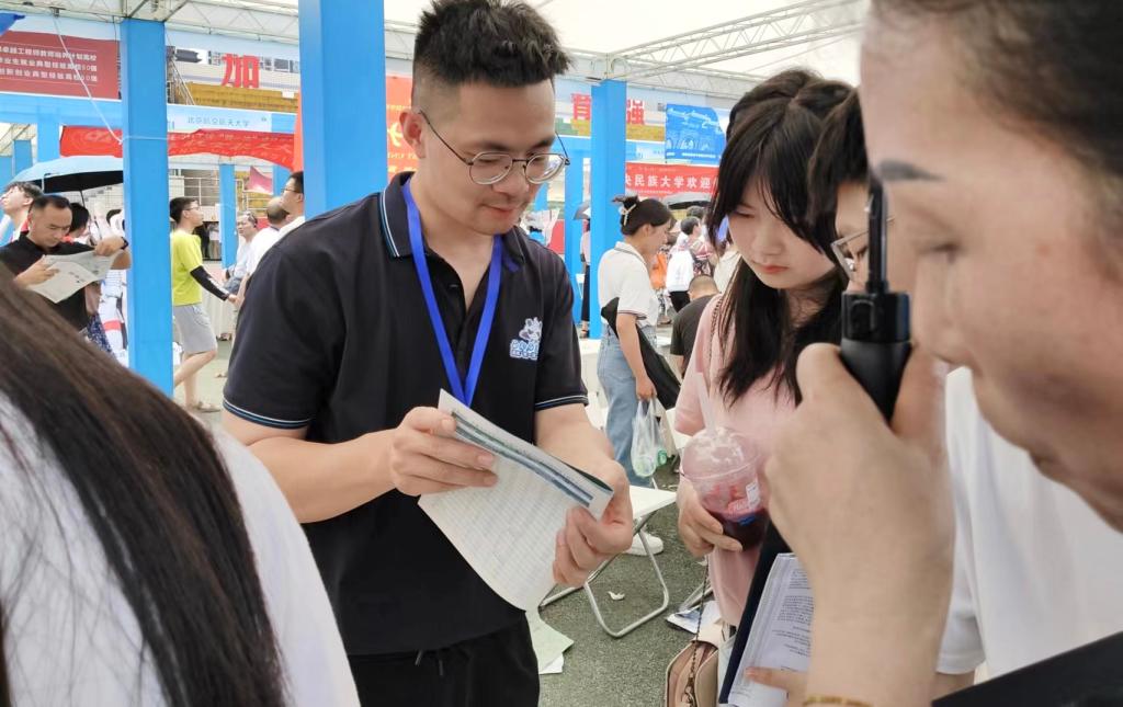 咨詢活動正式開始前,老師們精心布置場地,擺放好宣傳資料和現場物料;在咨詢現場,老師們向冒著烈日酷暑前來咨詢和了解的學生和家長耐心介紹學校2023年的專業招生計劃和近兩年錄取分數線,給家長和學生填報志愿提供參考。此外,老師們還從專業發展、培養目標、專業特色、畢業去向等方面向學生及家長進行了詳細介紹,提供貼心指導與服務,并且對學生和家長關心的就業、保研、學習、生活住宿條件等問題進行了耐心地解答。在耐心解答家長和考生的咨詢的同時,還給家長和學生們發放了學校招生宣傳手冊和報考指南。