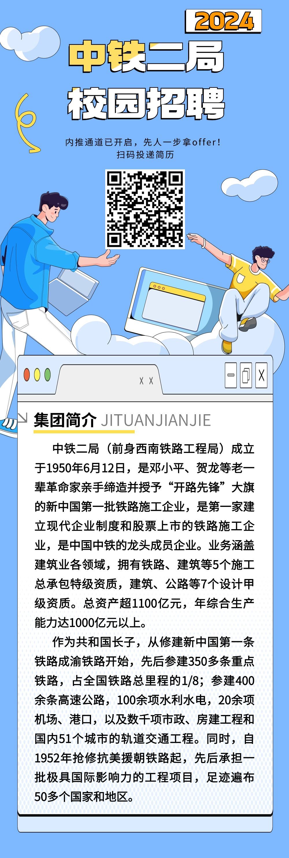 中鐵二局,不二之選!中鐵二局2024年校園招聘正式啟動