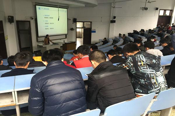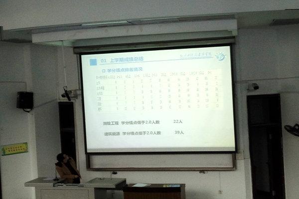 建環、測繪專業輔導員陳鵬磊就上學期學習、工作以及本學期基本內容做了簡要總結與說明。陳老師就上學期期末成績、四六級過級率以表格和統計圖的形式給大家做了簡要分析。他提出:在新的一學期,我們要更加努力,因為我們即將面臨專業課程的挑戰,我們需要有信心和動力去啃這根硬骨頭。班會上,陳老師還就本學期運動會動員大會以及未來就業、考研、出國等事情做了說明。