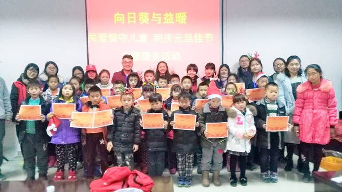 在寒流、霧霾肆虐的冬日里,來自我校向日葵協會的會員、外校及自愿參與“關愛留守兒童,同慶元旦佳節”(以下簡稱“關愛留守兒童”)活動的人員,陪著孩子們度過了一個歡樂的下午。