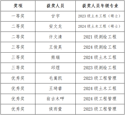 根據(jù)學(xué)校《關(guān)于開(kāi)展西南石油大學(xué)2025年大學(xué)生“飛翔”藝術(shù)節(jié)“聲動(dòng)石大”校園歌手大賽的通知》的安排,我院組織并開(kāi)展了此次歌手大賽院賽,經(jīng)過(guò)現(xiàn)場(chǎng)展示評(píng)分,現(xiàn)將西南石油大學(xué)2025年大學(xué)生“飛翔”藝術(shù)節(jié)“聲動(dòng)石大”校園歌手大賽土木工程與測(cè)繪學(xué)院院賽獲獎(jiǎng)名單公示如下: