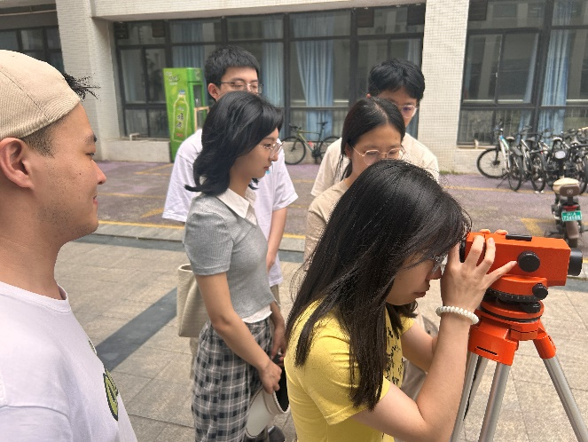 活動伊始,由負責人郭芯琪向在場人員簡要介紹活動流程以及實驗器械的用法,包括水準儀的調平,三腳架的調整等,并提醒同學們一些器材使用的注意事項。隨后,體學員以明辨樓E區辦公樓為實踐場域,分組開展環形海拔差測量實訓。通過反復調試與數據比對,各小組最終將測量誤差精準控制在±3mm范圍內,展現出扎實的工程測量基本功。緊接著,由負責人帶領同學們前往明志樓A105實驗室,安文龍同學為在場人員演示了巖土試樣烘干以及抗凍融相變材料的制備實驗,并講解了相關實驗目的和注意事項,同學們從中了解了相變材料抗凍融原理以及一些專業基本知識。