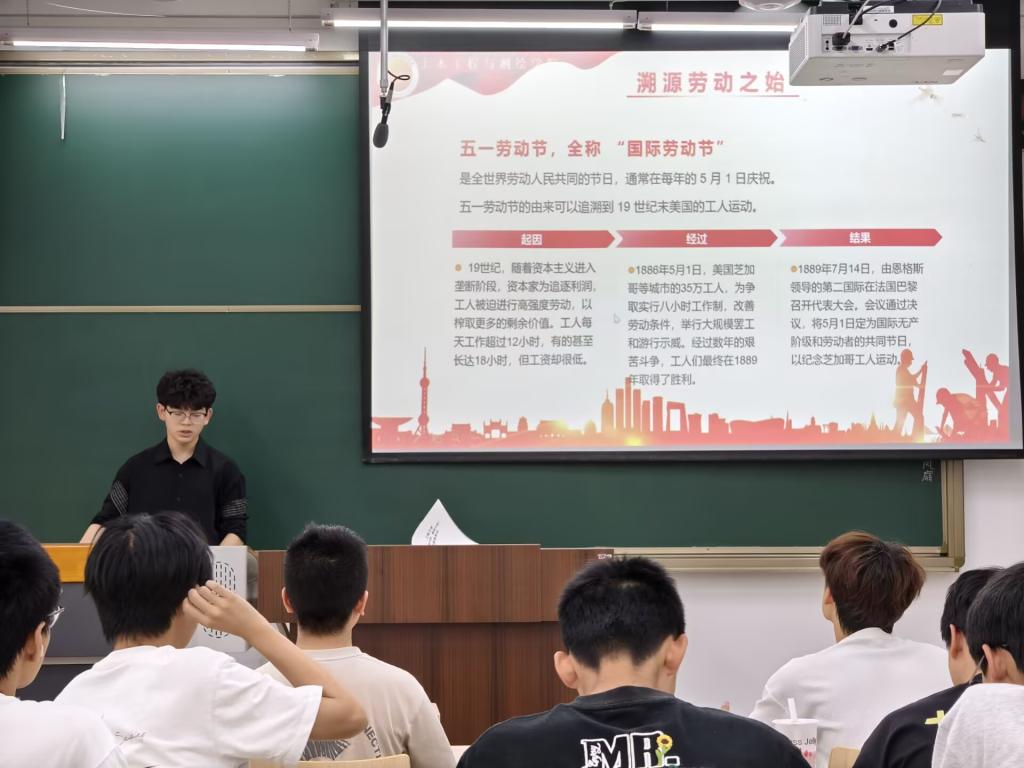 活動期間,各班以主題班會為載體,依托配套PPT資料開展實踐教學。高年級學生根據課程安排靈活選擇參與模式,或線上觀看勞動教育紀錄片參與云端案例研討,或線下參與實體班會;低年級同學則以班級為單位在教室內開展沉浸式學習交流。班會現場,學生們圍繞"勞動創造價值"展開熱烈討論,結合專業特色分享勞動在學科領域中的具體體現。在實踐環節各班級創新設置多樣化勞動場景,各班級或組織校園公共區域環境清掃,將勞動教育融入日常校園服務。各班班長全程跟進活動開展,系統收集整理活動影像、學生實踐報告及心得體會,形成可視化活動成果集,進一步鞏固學習成效。