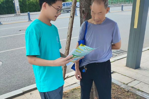 活動伊始,實踐隊員深入社區,調查并訪談了社區居民以了解居民日常垃圾分類習慣與認知水平。隨后,隊員們在社區范圍內沿街宣傳,將精心設計的垃圾分類知識傳單分發至過往居民手中,其中包含的核心知識簡明扼要,便于居民留存查閱,成為日常實踐的“綠色指南”。同時,實踐隊員們通過對圖文并茂的傳單進行通俗易懂的講解,系統地為社區居民科普了可回收物、有害垃圾、廚余垃圾與其他垃圾的準確區分標準與投放方法。面對居民提出的問題——如塑料瓶歸屬、過期藥品處理等,隊員們均耐心細致解答,現場互動氛圍熱烈。正如社區負責人所言:“大學生帶來的不僅是知識,更是共建美好家園的熱情與責任感。”每一次耐心的講解,都是對環保信念的無聲加固;每一份遞出的傳單,都讓綠色生活的種子在社區土壤里悄然萌發。