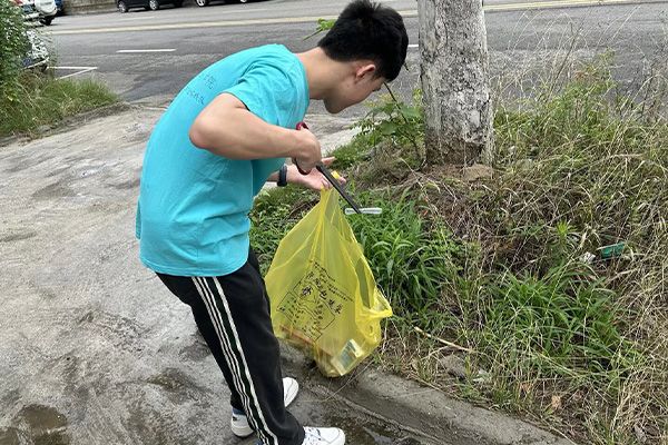 活動過程中,實踐隊員化身“環境衛士”。他們手持清潔工具,沿著社區主要干道推進,搜尋散落的白色污染物。無論是開闊的路面、規整的綠化帶還是隱蔽的草叢角落,隊員們不放過任何一處衛生死角。煙蒂、塑料袋、食品包裝袋等廢棄物被逐一撿拾、分類歸集。盡管天氣炎熱,汗水浸濕衣背,隊員們仍始終熱情飽滿,分工協作,高效推進清掃工作。他們忙碌的身影與專注的樣貌,生動地詮釋了新時代青年的擔當精神,成為社區里一道亮麗的文明風景線。經過數小時努力,實踐隊累計清理白色垃圾十余袋,社區環境煥然一新,原本被雜物侵擾的綠化帶與草叢也重拾清爽整潔。
