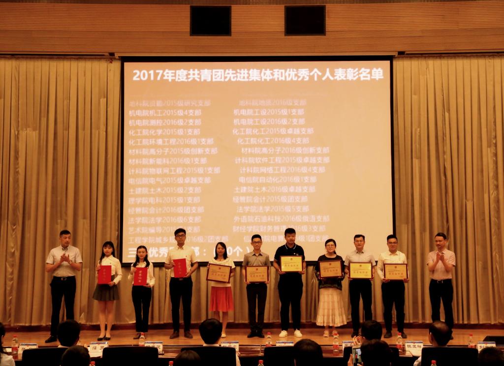在雄偉莊嚴的《中華人民共和國國歌》后,學工部(研工部)部長蒲勇宣讀《表彰決定》,表彰會現場分別頒發了共青團優秀個人,共青團優秀集體,青年志愿者行動優秀組織、社會實踐優秀組織和五四紅旗團委等獎項。