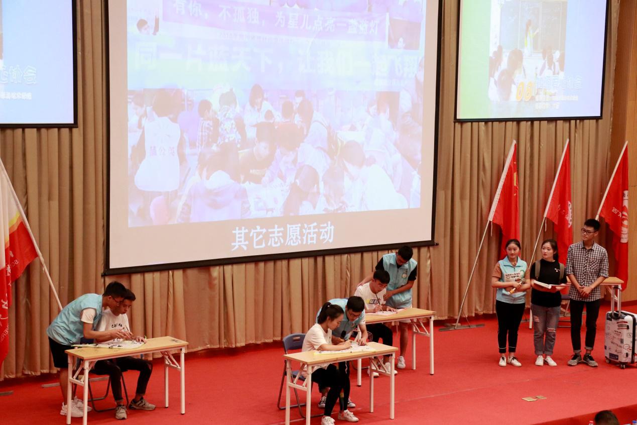 從“綠色入?!钡健熬G色離?!保G舟協會將象征著綠色發展理念的“綠絲帶文化”帶到現場,拉著簽名橫幅表達對協會未來發展的美好祝愿。朝陽社工協會用產品發布會的形式,講述協會十年與校同行,堅持打造公益專業團隊。建筑藝術協會介紹了在各種建筑結構比賽和社會實踐活動所取得的成果,讓學子們切身體驗建筑魅力。獅王的寶藏,廚王的爭霸,南粵文化交流社用別樣的方式傳播粵文化。安全與健康協會通過現場急救演示和健康知識問答,警惕廣大師生疾病并不遙遠。旅游信息協會開啟了一場從 “快樂星球”到“成果星球”的奇妙之旅,展示著武侯祠和四川省絲綢博物館的公益點建設。音樂俱樂部是充滿藝術熱情的靈魂聚集地,一首《紙短情長》,動人的歌聲將協會精神傳遞。知源愛心協會現場還原招新點滴、學生支教等片斷,清脆的朗讀聲,不負孩子們的期望,以愛訴源。
