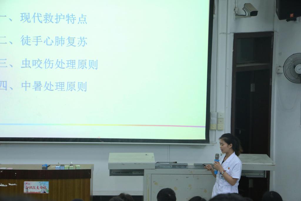 結合前幾年實踐經歷及在社會實踐中會面臨的問題,各位老師進行詳盡講解。廖香瓊老師就校外活動的安全衛生如食品安全、中暑、蚊蟲叮咬等進行講解,同時她從判斷周邊環境、了解傷病者情況、傷員搶救等方面講述了現場救護的實施步驟和相關事項,并強調遇險時第一目擊者現場急救的重要性,學會對意外事故準確無誤地判斷,并對其及時處理是每一個實踐者的必修課。