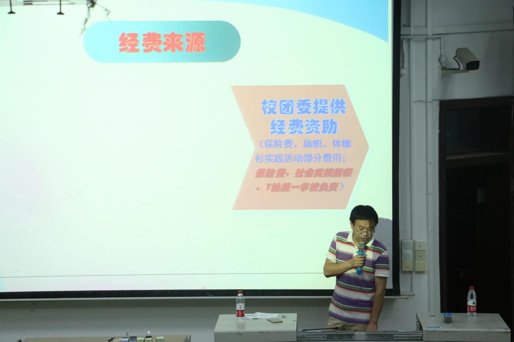 7月3日晚七點,校團委于思學樓B210舉行2018年暑期文化科技衛生“三下鄉”社會實踐活動校級團隊動員大會。校醫院老師廖香瓊,黨委宣傳部老師李陽,校團委副書記張維,校團委老師溫登峰出席現場為校級團隊成員進行社會實踐相關事宜培訓。