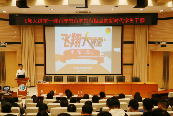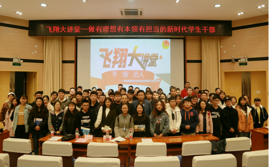 11月14日晚7點,【飛翔大講堂】--平“語”近人 做有理想有本領有擔當的新時代學生干部講座于思學樓A114學術報告廳成功舉辦。本次講座榮幸邀請中國教師發展委員會全國“十一五”教育科研先進工作者——成都實驗外國語學校王東強老師。我校團委溫登峰老師,校學生會、校社團聯等學生干部代表參加。