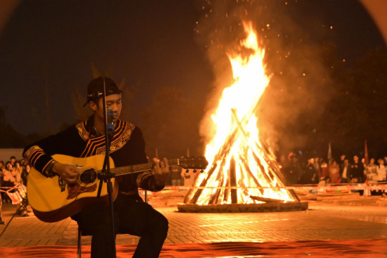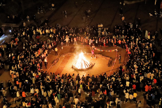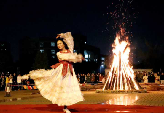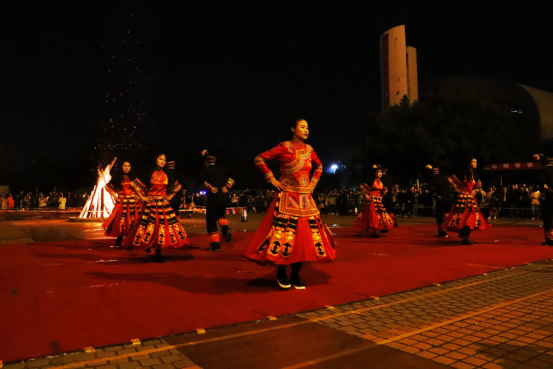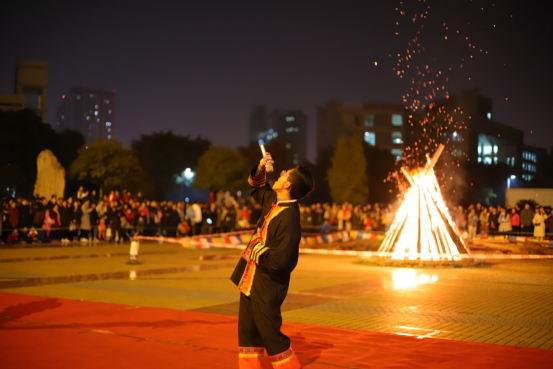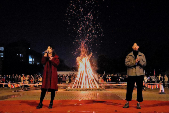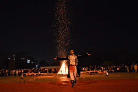 在大氣恢弘的《旗舞》開場秀之后,校團委副書記張維,校團委老師付相宜,第十五屆校社團聯主席張煒,第十六屆校社團聯主席范道全,民族文化協會會長拉布澤郎共同點燃篝火,為十六載社聯人的夢想蓄力。