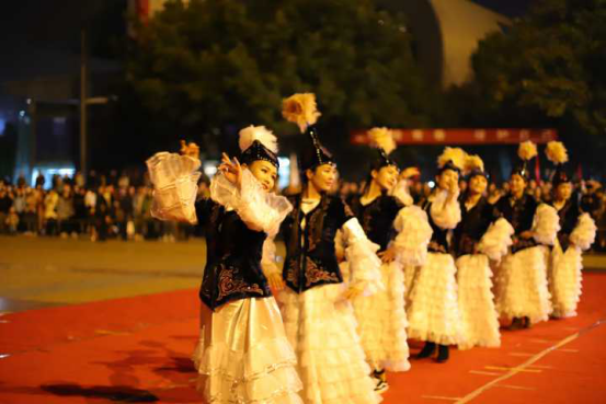 溫暖的篝火、歡快的音樂、飄香的美食……晚會現場熱鬧非凡,各民族學生表演了多個節目,展現了石大各民族學生的魅力與風采。熱情歡快的彝族舞蹈《達體舞》拉開了篝火晚會的序幕,哈薩克族舞蹈《春天花》《黑走馬》、藏族歌舞《吉祥謠》《甘孜踢踏》、維吾爾族舞蹈《黑眉毛的姑娘》《薩瑪舞》、彝族歌舞《哎呀,小涼山》《阿詩且》、蒙古族歌曲《烏蘭巴托的夜》等節目依次表演。現場氣氛熱烈、高潮迭起,排舞協會,音樂俱樂部,南粵文化交流社也分別帶來了現代舞《kiss the sky》《love me like you do》《南粵醒獅》等節目,無論是歌舞表演還是器樂演奏都讓現場持續升溫。最后,隨著歡快的音樂,大家手牽手圍繞篝火跳起了《民族大合跳》。喜悅的舞蹈,熊熊的烈火,燦爛的星空,照亮了一個個明媚的笑臉。計科院大二學生邱碩說:“大學課余生活豐富多彩,我已經是第二次參加篝火晚會,真的很有意義!很開心!”
