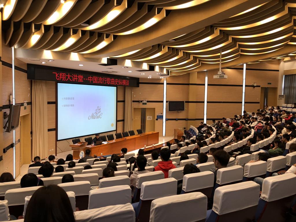 為弘揚中華美育精神,做好美育工作,4月11日下午,【飛翔大講堂】—中國流行歌曲史縱橫談在思學樓A114舉辦,本次講座邀請中國音樂協會理事,四川省音樂家協會副主席,作曲家趙小毅老師。