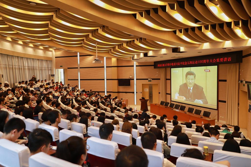 五四之火永不熄,熱血青年鑄輝煌。4月30日上午,中共中央總書記、國家主席、中央軍委主席習近平在紀念五四運動100周年大會上發表重要講話。校團委組織廣大團員青年和團干部在思學樓A114收看大會實況,認真學習領會習近平總書記在大會上的重要講話精神,交流體會,暢談感想。