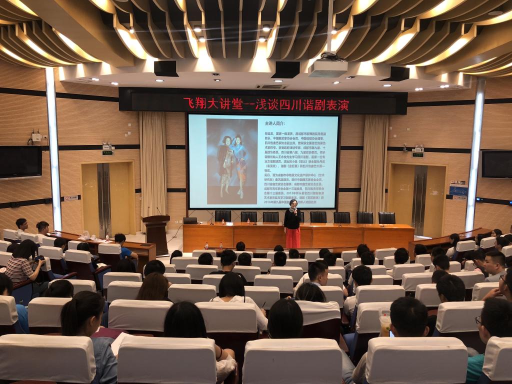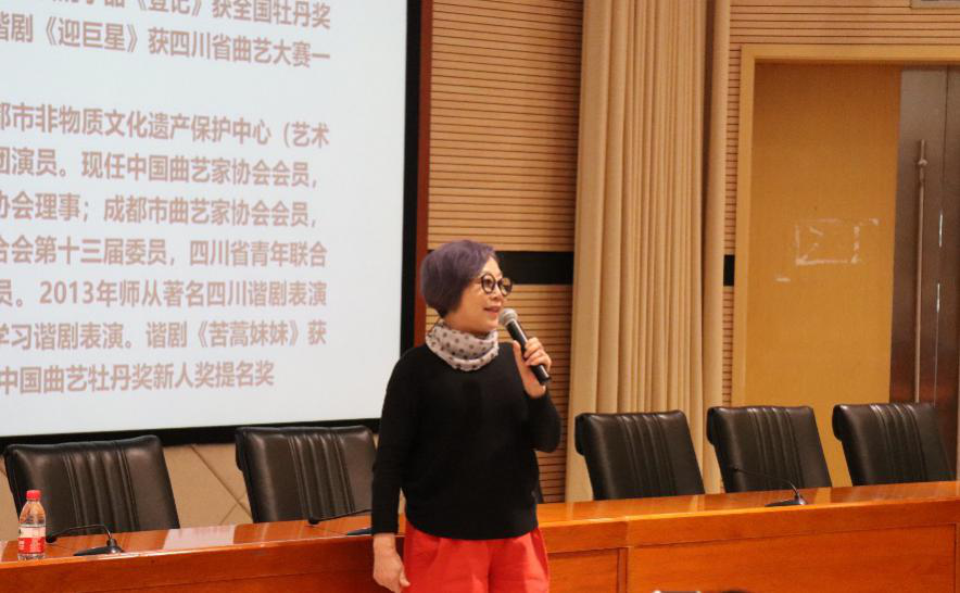 5月16日下午,“飛翔大講堂”在思學(xué)樓A114成功舉辦,本次講座榮幸邀請到國家一級演員,原成都市歌舞劇院常務(wù)副院長,四川“女諧”第一人張廷玉老師及其弟子吳丹。