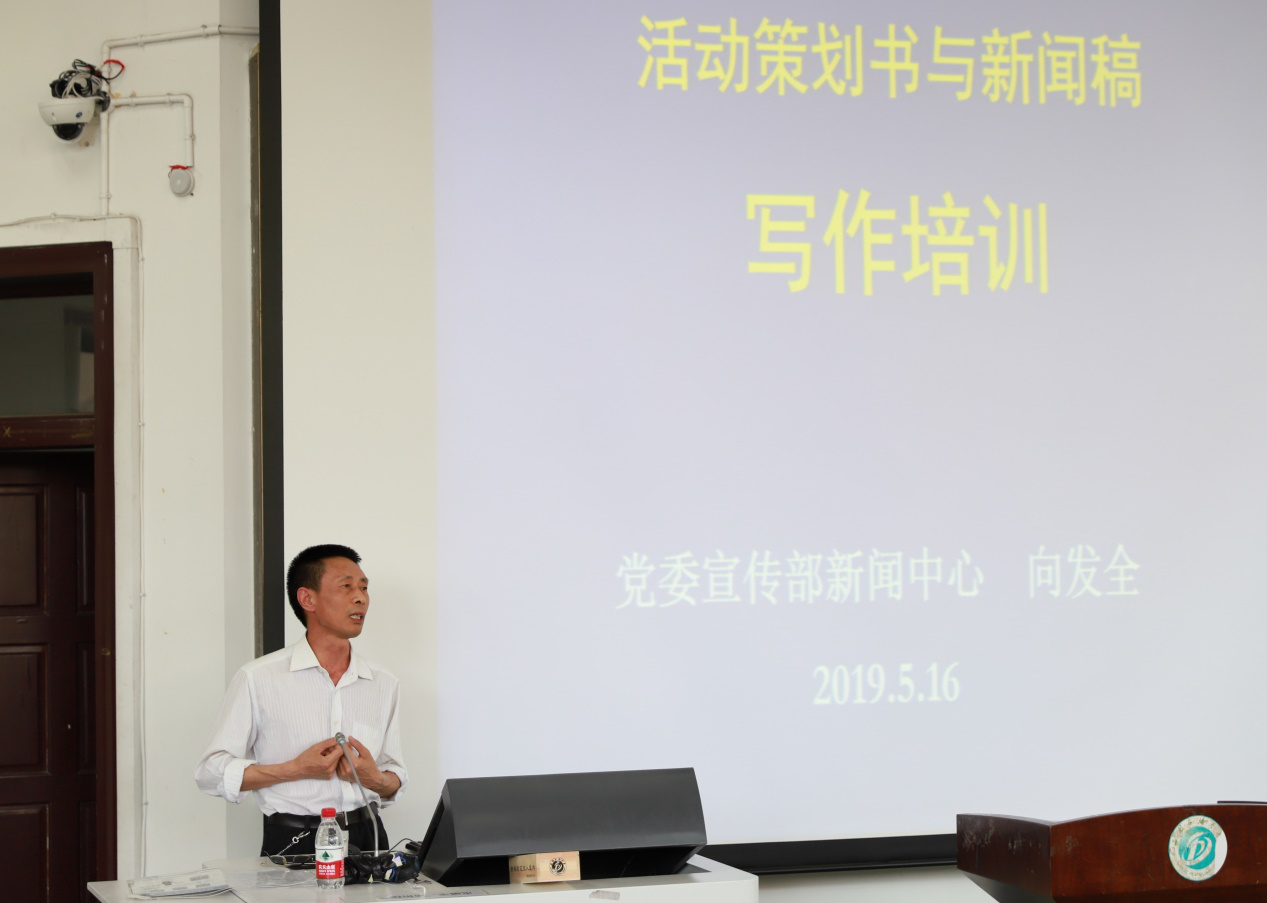為進一步提高廣大青年學生干部新聞宣傳工作水平,提升新聞素養和創新能力及對活動策劃的了解認識。5月16日下午,團校第十二期青馬工程暨第62期學生干部培訓第二次大團課在思學樓C210舉行。本次大團課邀請到我校黨委宣傳部新聞中心向發全老師擔任主講人。